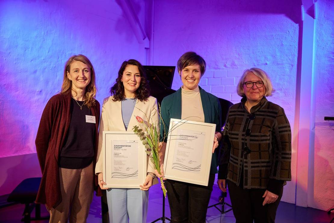 Am Abend wurde es feierlich: Der 2022 im Rahmen des 40-jährigen Jubiläums der Claussen-Simon-Stiftung ausgelobte und mit 10.000 Euro dotierte Partizipative Preis wurde von einer stipendiatischen Jury an zwei Projekte aus der Stiftungscommunity verliehen. Den musikalischen Schlusspunkt und ein Zeichen für ein friedliches Zusammenleben setzten fünf Musiker:innen mit dem Konzert "The Place of Freedom": Die Pianistin und stART.up-Alumna Daria Marshinina kurtierte das musikalische Programm und brachte gemeinsam mit der Pianistin Elisaveta Ilina, stART.up-Alumna, der Sopranistin Vlada Shchavinska, dem Posaunisten Andrii Shparkyi sowie der Bratschistin Evgenia Vynogradska Werke von ukrainischen und russischen Komponist:innen mitreißend zu Gehör.