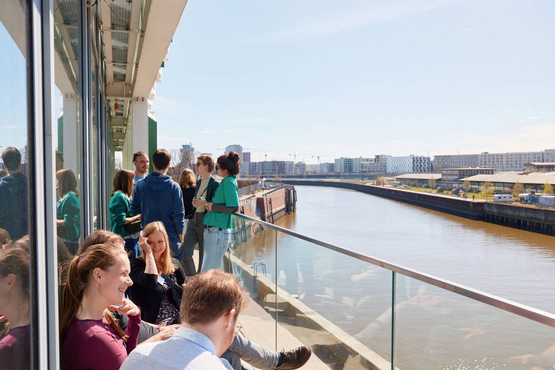 Bei schönsten Frühlingswetter begann das Alumni:aetreffen mit einer alternativen Hafenrundfahrt: Mit Blick auf große Containerschiffe, die Hafencity und die Baustelle des Elbtowers wurden Themen angesprochen wie Stadtentwicklung, die Rolle von Schiffen in der Logistik sowie die gesellschaftliche und politische Bedeutung des Hafens. Mit Schwung ging es nach der Barkassenfahrt in den Abend: Drei ehemalige stART.up-Stipendiat:innen, Joël, Marie und Lydia eröffneten den Abend mit Seemannsliedern und Akkordeonmusik. Mit Pizza, Getränken und Gesprächen klang der Abend aus.