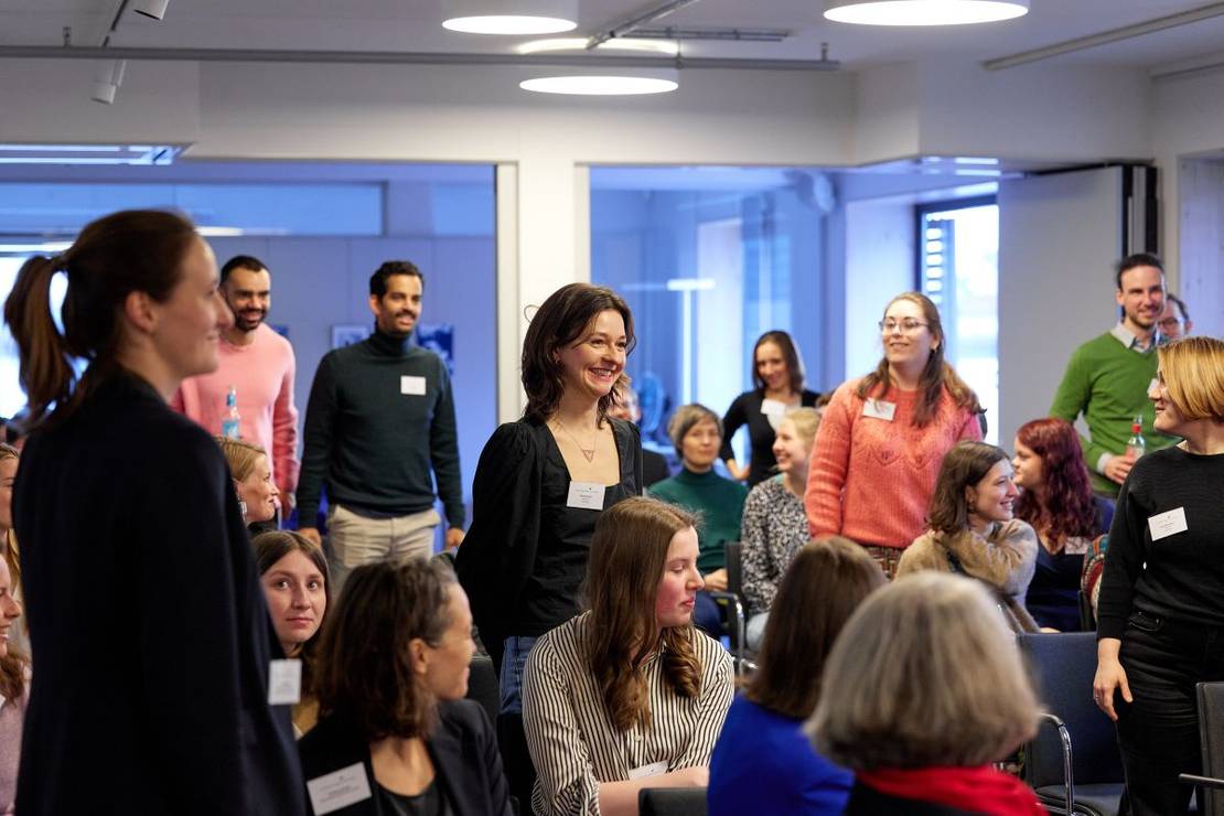 Anschließend konnten die Alumni:ae an einem von drei Workshops teilnehmen: Silvia Niersbach, Dissertation Plus-Alumna, arbeitete mit den Teilnehmenden kreativ zur Frage, wie Care-Arbeit und Erwerbsarbeit in einer perfekten Welt miteinander vereinbart werden könnten. Master Plus-Alumnus und Startup-Unternehmer Malik Voß gab das Motto aus: "Manage your energy, not your time!". Und der Regisseur und stART.up-Alumnus Ron Zimmering gestaltete einen Workshop zum Thema Shared Leadership.